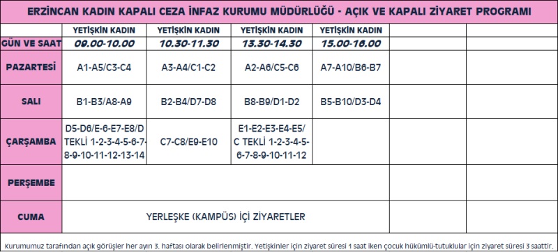 24002 Gümüştarla, Organize Sanayi Bölgesi Erzincan Ceza İnfaz Kurumları Kampüsü/ Erzincan Kadın Kapalı Ceza İnfaz Kurumu Merkez/ ERZİNCAN